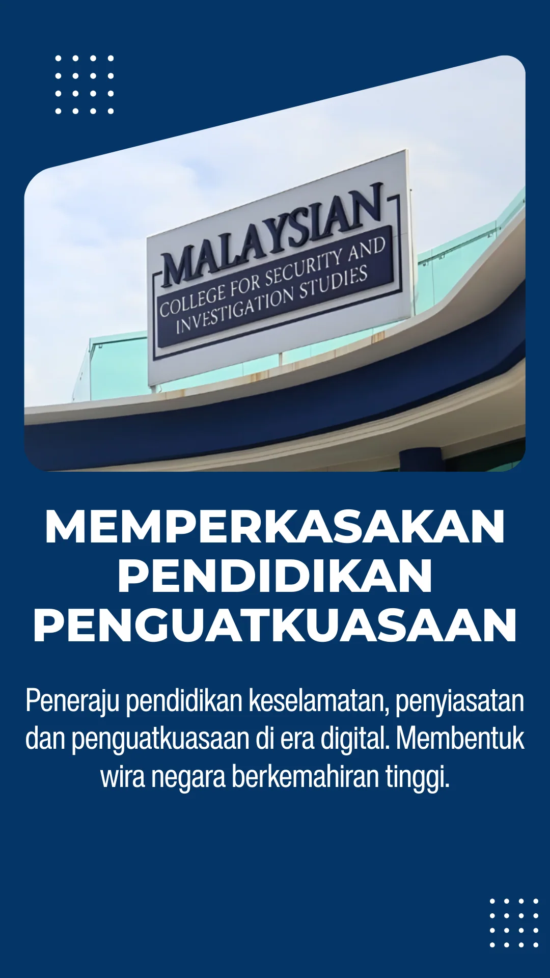 Kolej Pengajian Keselamatan dan Penyiasatan Malaysia (KPKPM) telah diasaskan oleh mantan Ketua Polis Negara, Tan Sri Fuzi Harun, sebagai sebuah institusi pendidikan tinggi yang komited dalam pembangunan bidang keselamatan dan penyiasatan di Malaysia. Kini, institusi ini diterajui oleh Dato’ Shamsudin Haji Mat, mantan Komandan Pusat Latihan Polis Kuala Lumpur, yang membawa pengalaman luas dalam bidang kepimpinan dan latihan profesional. KPKPM beroperasi di Cyberjaya, Selangor.
